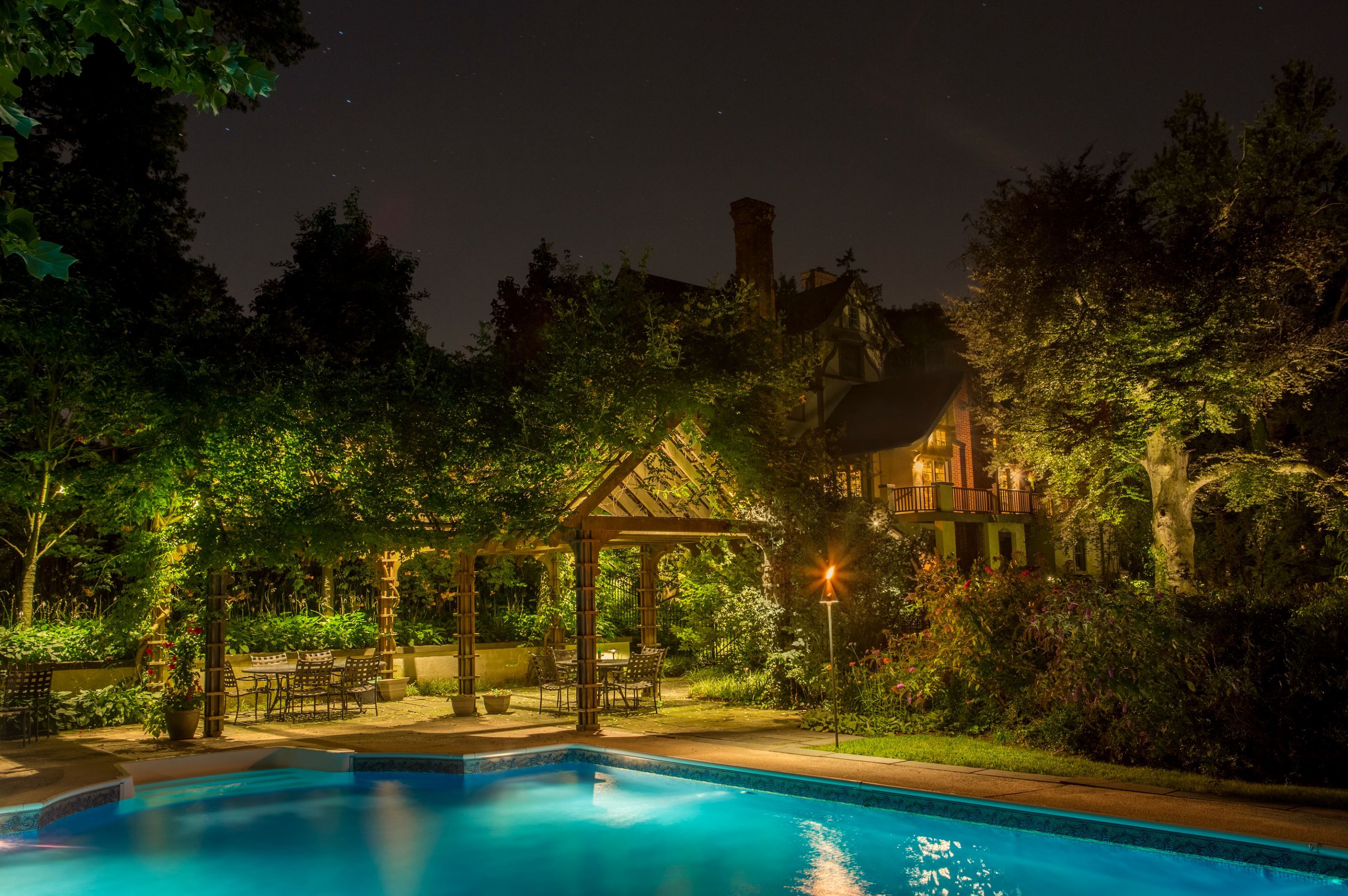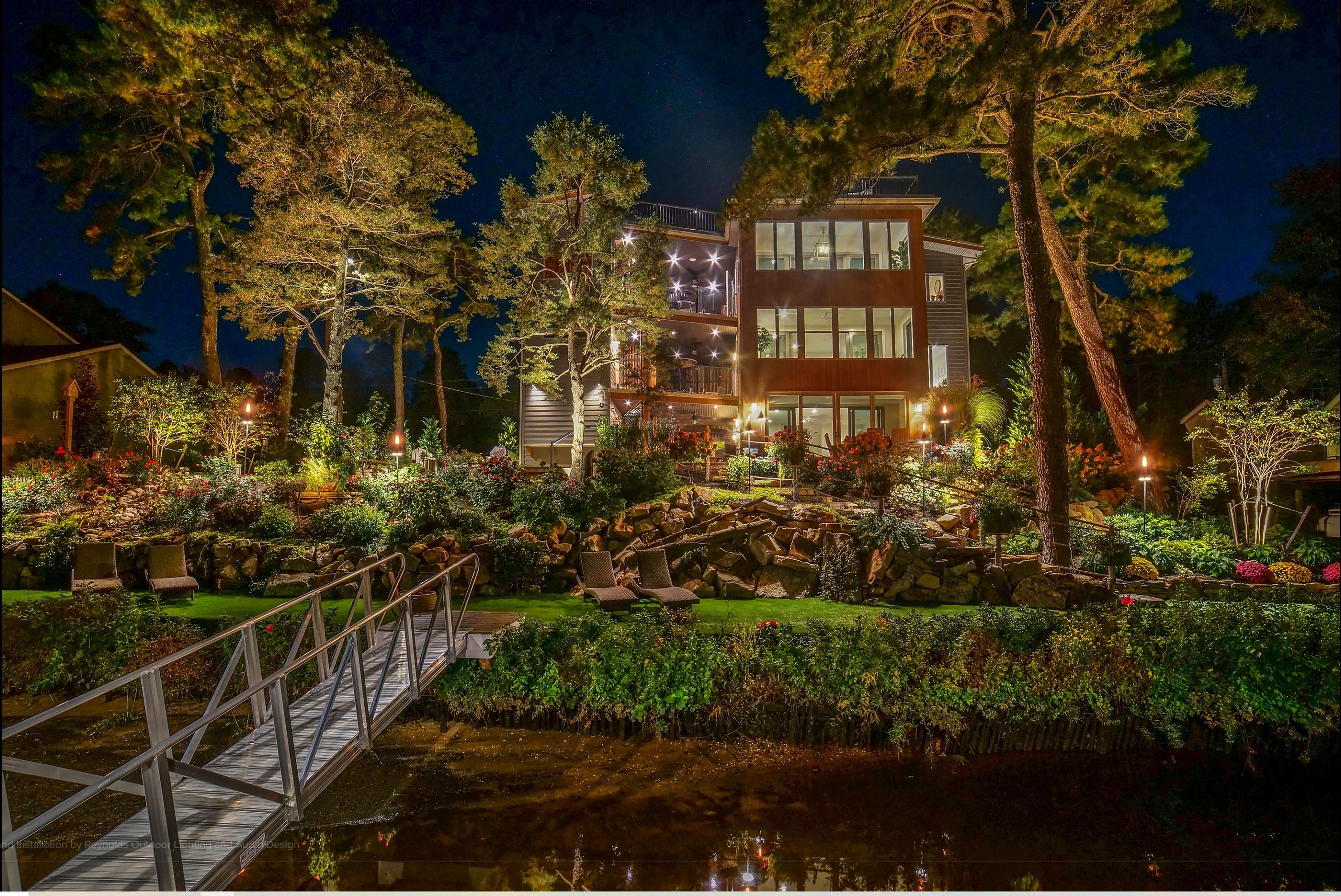 Sophisticated landscape lighting systems that accentuate gardens, water features, and outdoor living